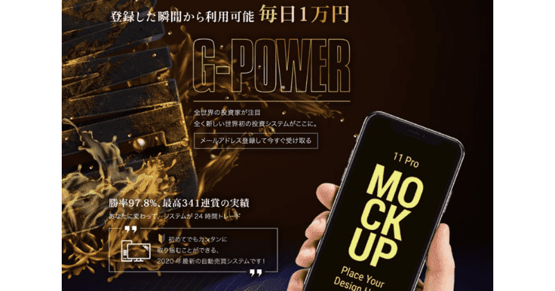 本日は、登録した瞬間から毎日1万円が稼げる投資システム『G-POWER(Gパワー)』についてお話していきます。