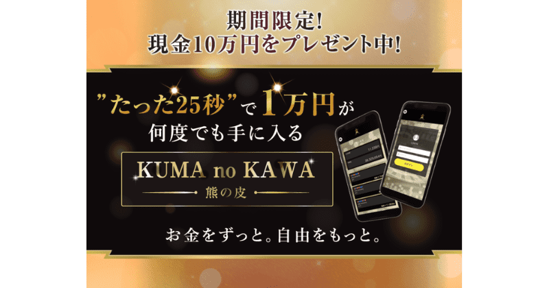 たった25秒で何回でも1万円が稼げるkuma no kawa熊の皮とはどんな副業でしょうか?