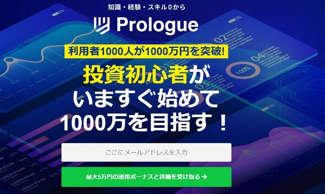 Prologue/プロローグは、知識・経験・スキルがない投資初心者でも1000万円を目指すことができる副業案件です。
