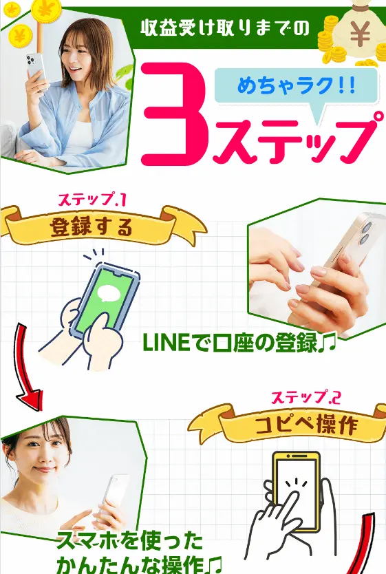 登録するとイマドキの収益の受け取り方の流れなどを画像と共に説明がありました。