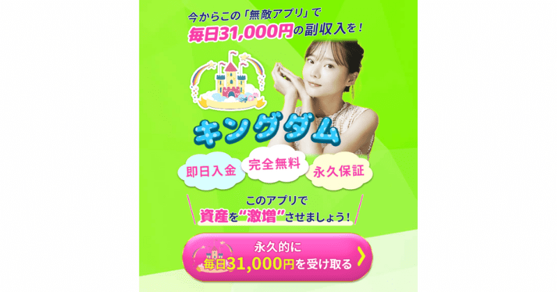 橋本真央のキングダムですが、なんと参加することで永久的に毎日3万1000円を受け取ることができると謳っています。