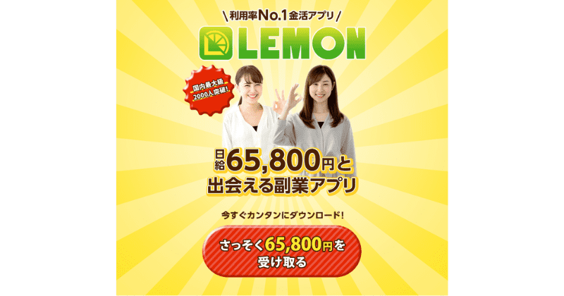 LEMON/レモンは、毎日65800円、つまり毎月約200万円もの大金を受け取ることができる副業です。