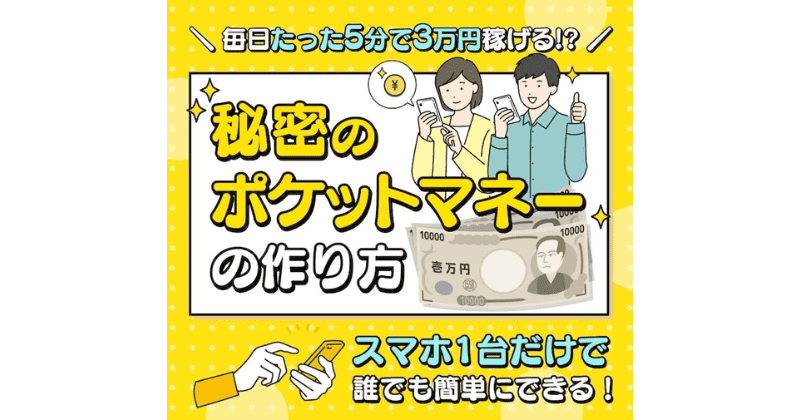 秘密のポケットマネーは、毎日たった5分で3万円稼げると謳っている副業案件です。