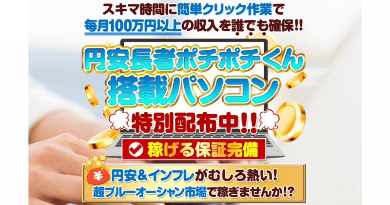 円安長者ポチポチくんの詳細は一体どのようなものなのかランディングページを見つけたので、特徴を説明していきます。