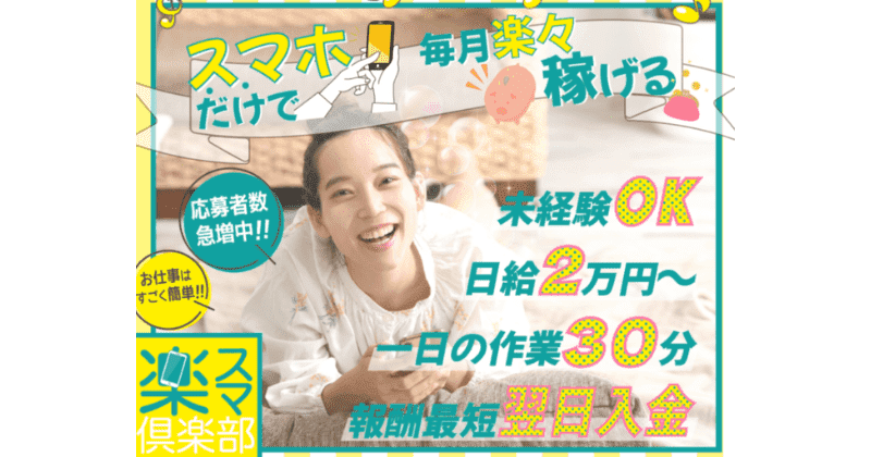 楽スマ倶楽部は、簡単に言うと30分のスマホ作業で毎日2万円以上が稼げるという副業案件です。