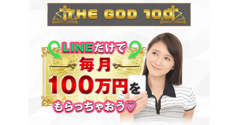 今回は、LINEに送られてくる情報をタップするだけで毎月100万円が稼げるという副業『THE GOD 100(ザ・ゴッド100)』をご紹介します。