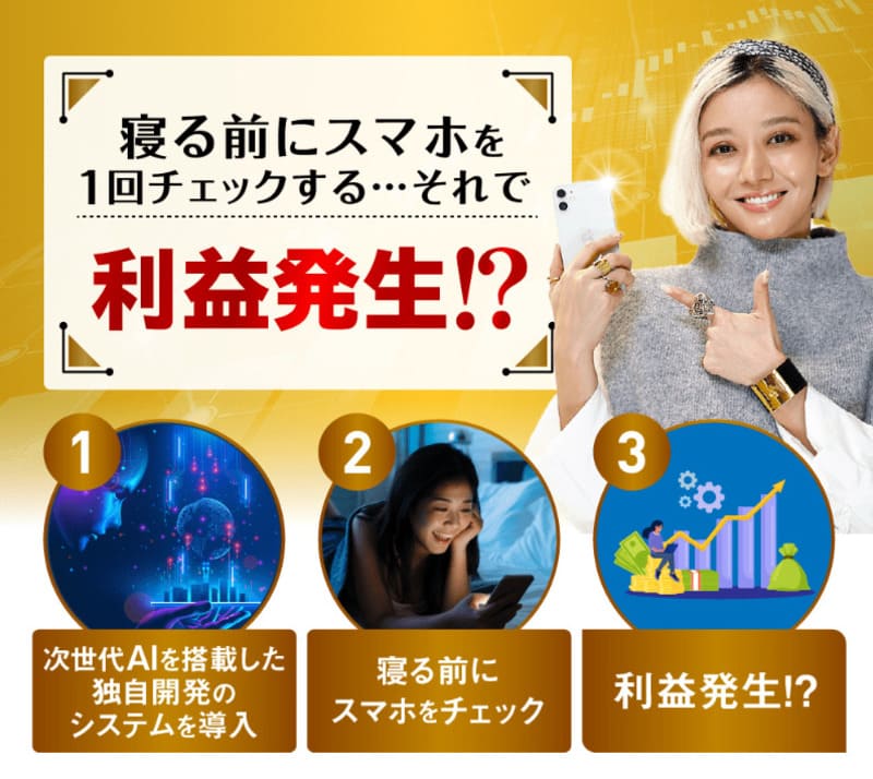(斉藤峰子 主婦・44歳)・スマホで利益を確認すればいいので、すっごく楽ちんです。